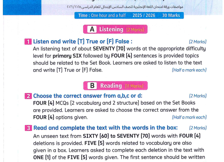 يقدم كتاب المعاصر انجليزي الصف السادس الابتدائي الترم الثاني 2026 محتوى تعليمي متوافق مع أحدث مواصفات وزارة التربية والتعليم، ومن أبرز مميزاته: